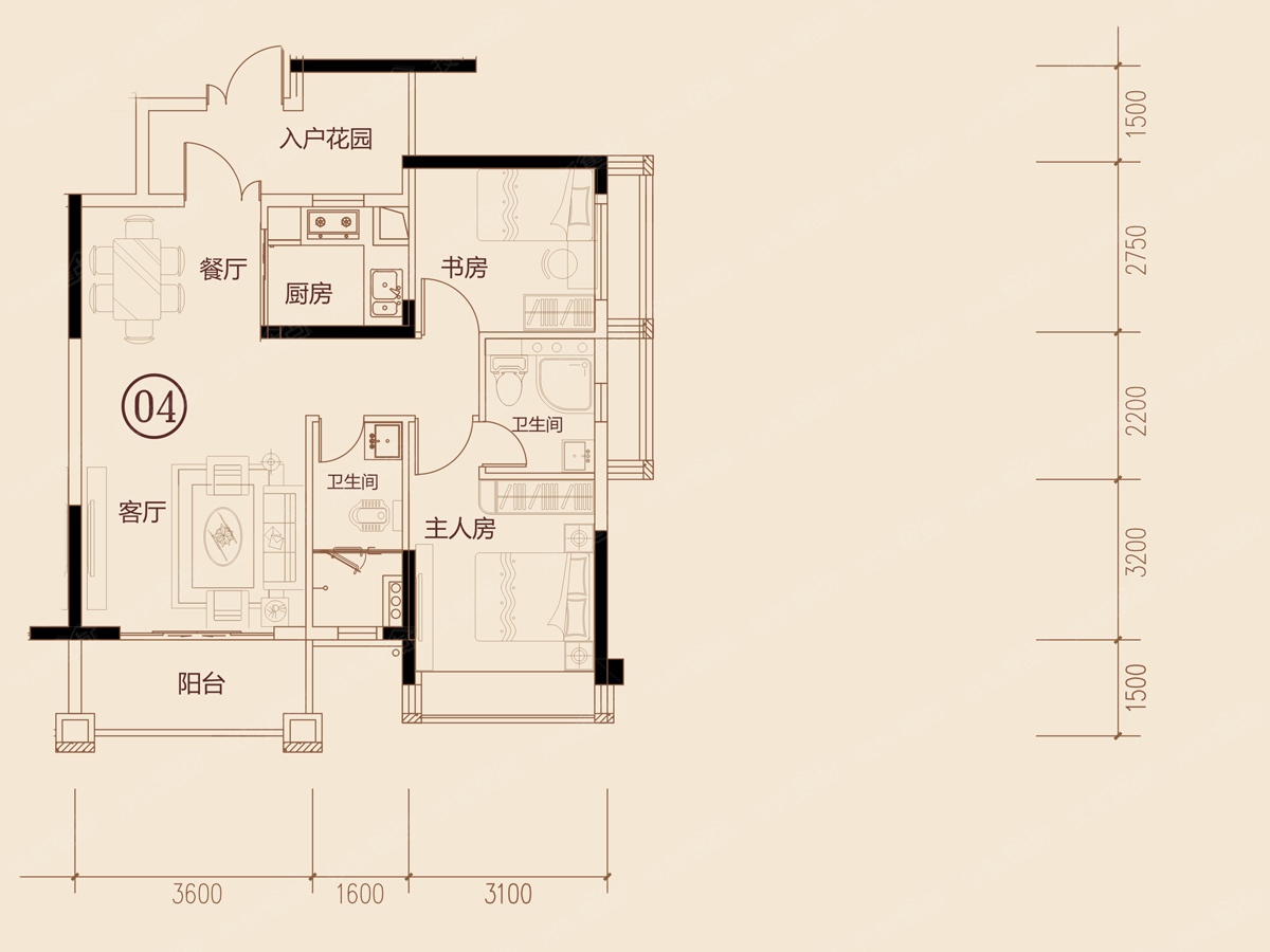 3室2厅2卫-2栋04户型