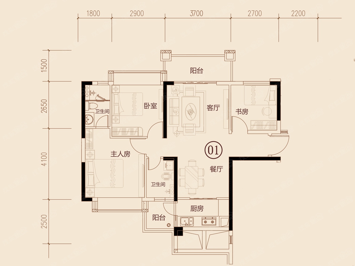 3室2厅2卫-5栋01户型
