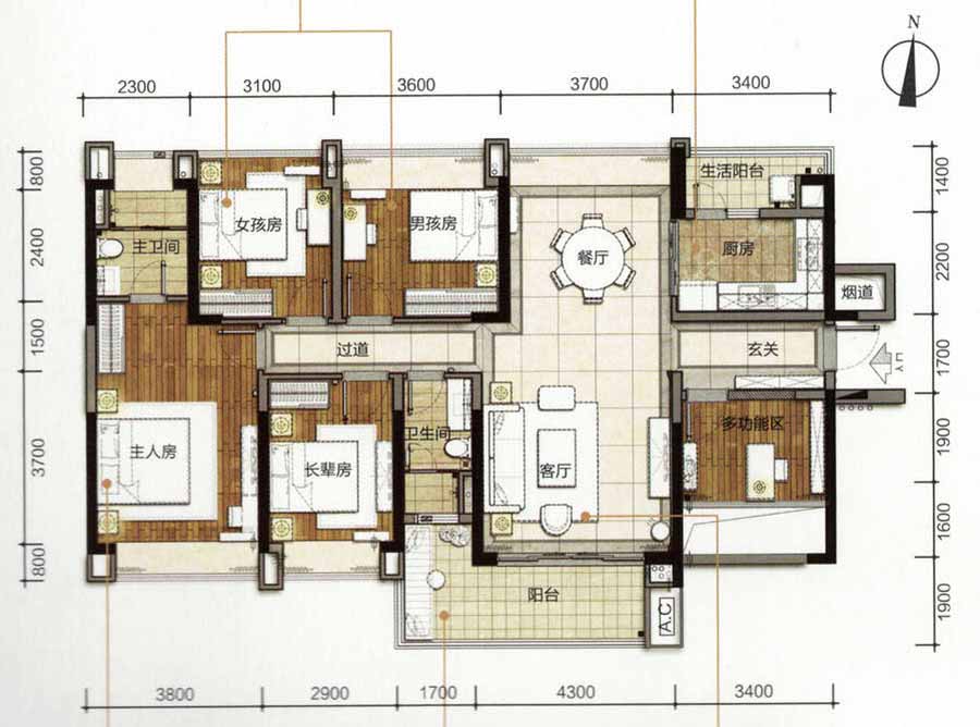 5室2厅3卫-1幢04户型