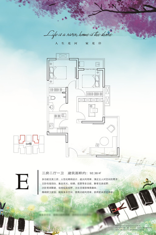 3室2厅1卫-大树公馆6#楼 三室两厅一卫约92.38