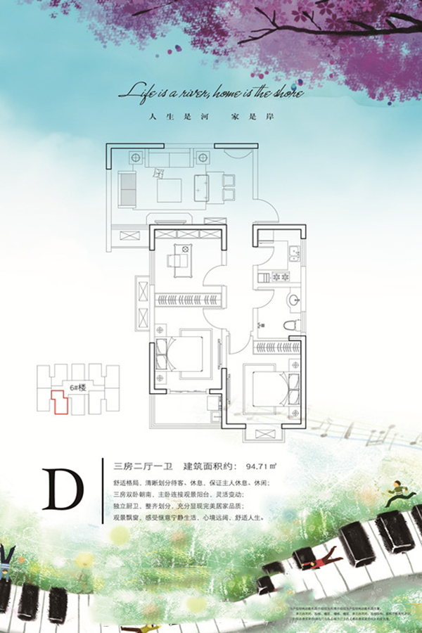 3室2厅1卫-大树公馆6#楼 三室两厅一卫约94.71