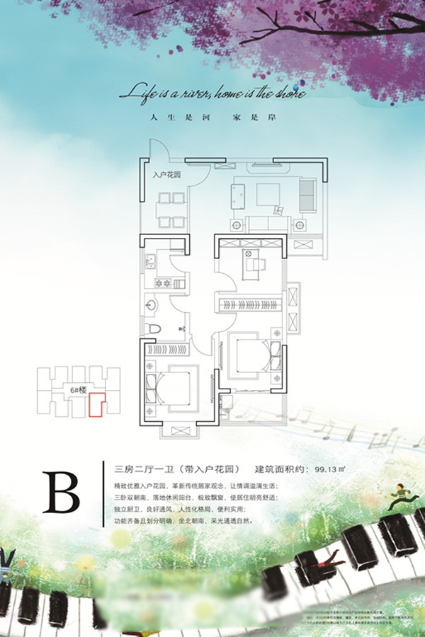 3室2厅1卫-大树公馆6#楼 三室两厅一卫约99.13
