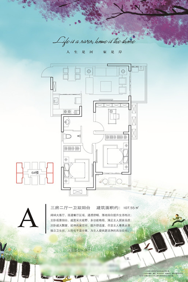 3室2厅1卫-大树公馆6#楼三室两厅一卫约107.55