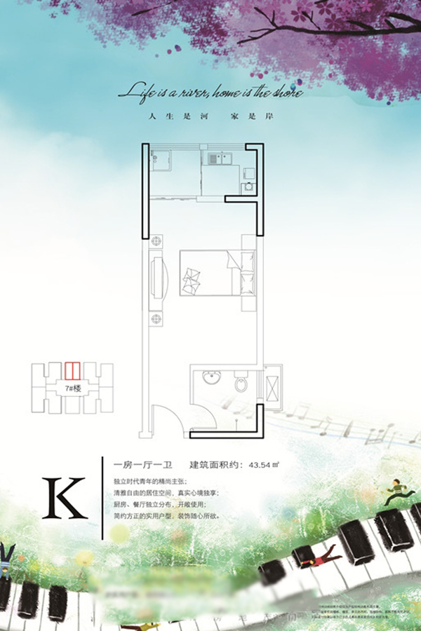 1室1厅1卫-大树公馆7#楼 一室一厅一卫约43.54