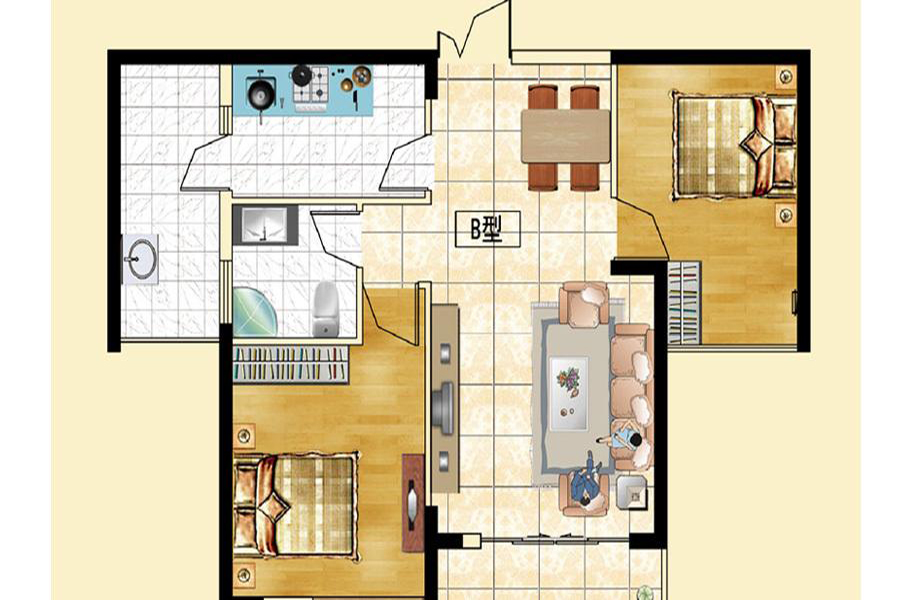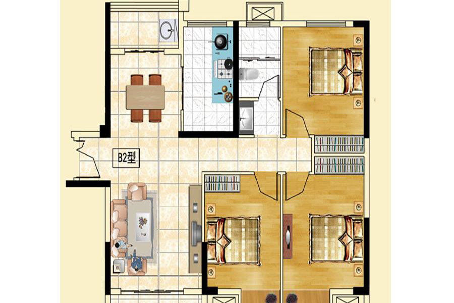 2室2厅1卫-B户型 2室2厅1卫 85.80㎡