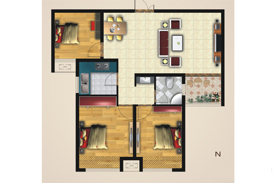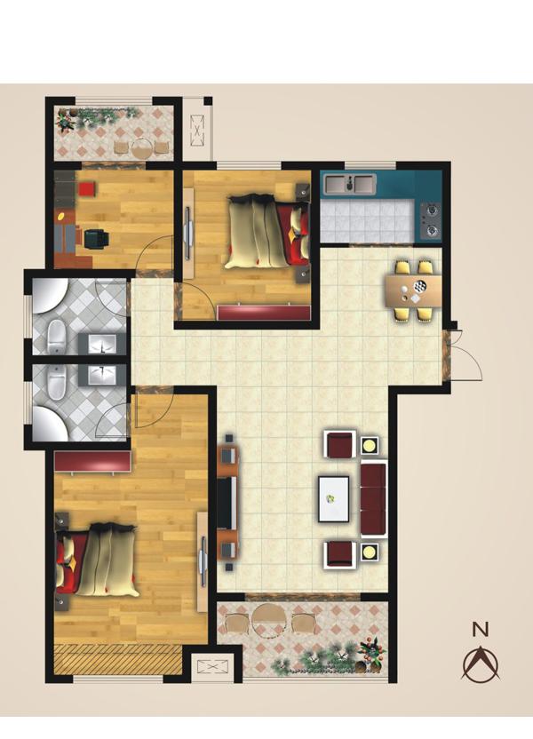 3室2厅2卫-3# 6# A户型