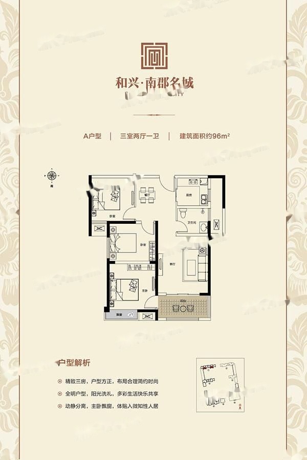 3室2厅1卫-A户型:三室两厅一卫
