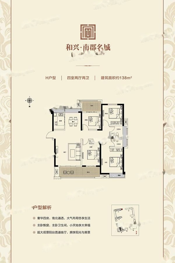 4室2厅2卫-H户型:四室两厅两卫
