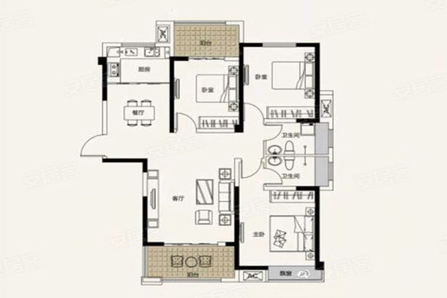 3室2厅2卫-A1户型3室2厅2卫1厨