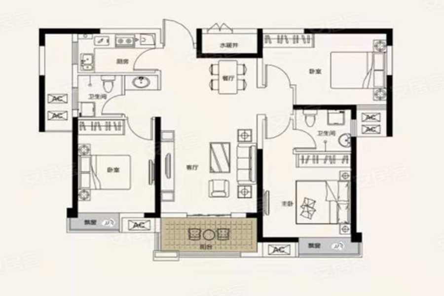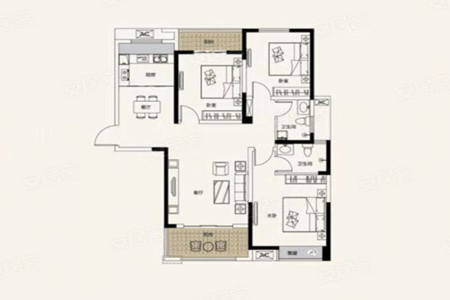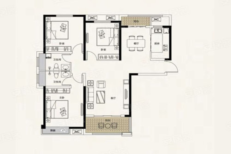 3室2厅2卫-C户型:三室两厅两卫