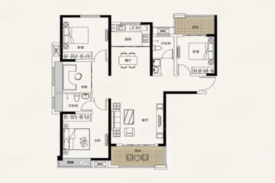 3室2厅2卫-B5户型3室2厅2卫1厨