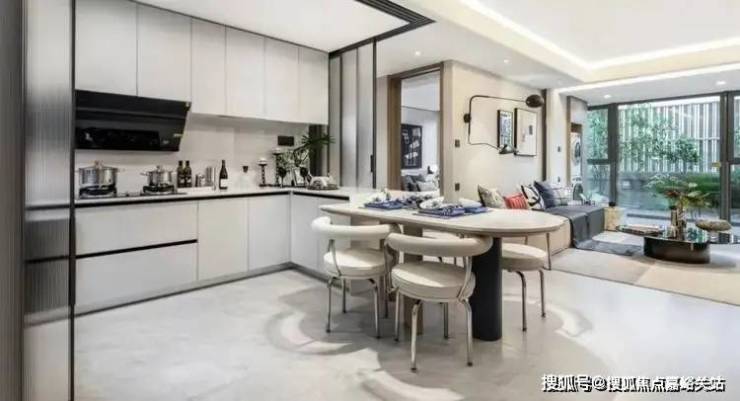 金地嘉峯汇官方售楼处电话:400-8824-198 VIPLINE✔✔✔【官方发布】厨房移门采用大板砖厨房墙体、硅酸钙板厨房吊顶,定制金属移门+瓦楞玻璃,可根据需求自行开合,不仅引入更多光线,更增强了互动性。同时配备方太(或同等档次品牌,以实际交付为准)油烟机和灶台、洗碗机,以及凉霸。