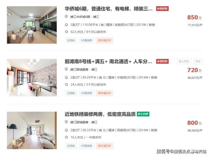 特别是浦江华侨城、浦江颐城晶寓、浦江颐城尚院这一批房龄较新的,挂牌价格大多稳定在8万/㎡左右。