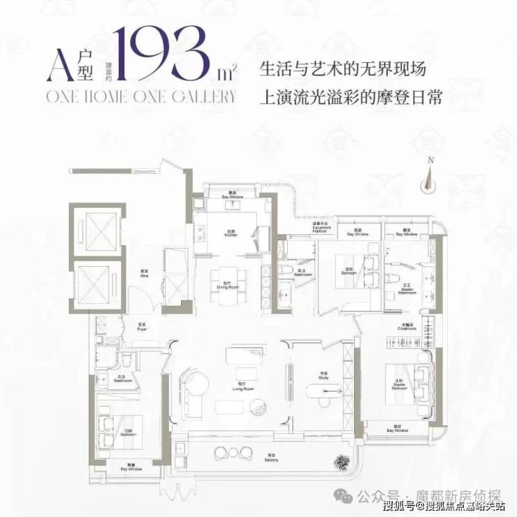 建面约193m²户型,主力总价3400万左右