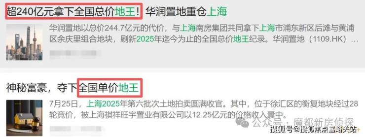 华润置地&南房集团超240亿总价打包拿到的浦东后滩和黄浦余庆里地块,成为今年上海 单次成交总价最高的地块包。