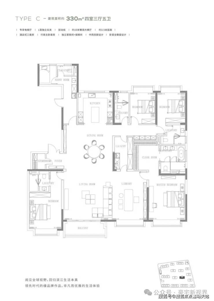 纯粹大户型:主打190-330㎡的大平层,梯户比为1:1,保证了私密性和居住品质。得房率高达78%-80%,空间利用率很高。