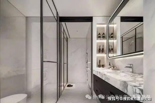 公卫打造独特的四分离系统,实现独立洗漱台、卫生间、淋浴间、洗衣区互不打扰,将酒店化体验引入住宅。