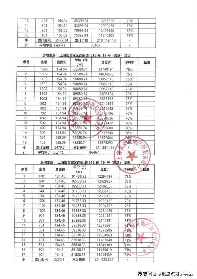 267、均价:单元或整个项目总销售额除以可销售面积得出的价格。