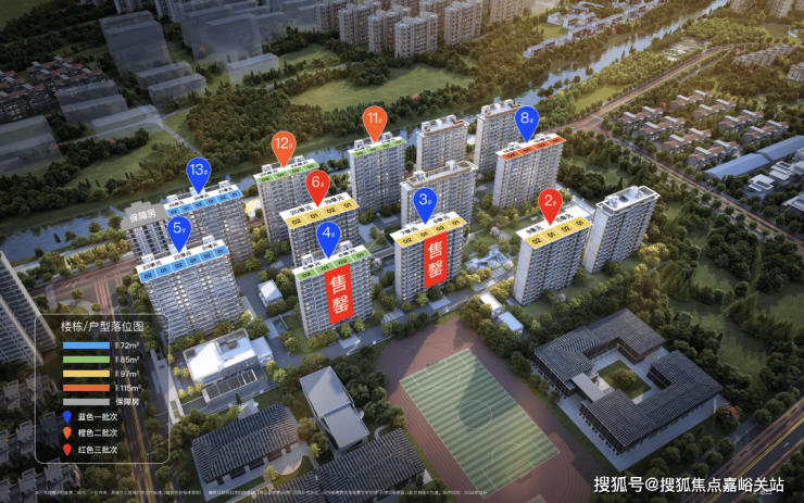 项目首开3、4、5、8、13#等5幢,首开房源356套,楼幢位置及户型分布如下