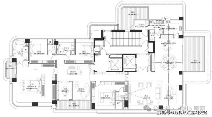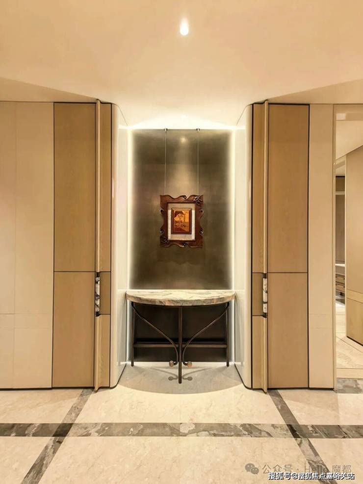 ·抬板设计巧妙隐藏风井、垃圾动线等不利因素,归家动线打造双重礼序厅,从细节彰显尊贵居住体验。