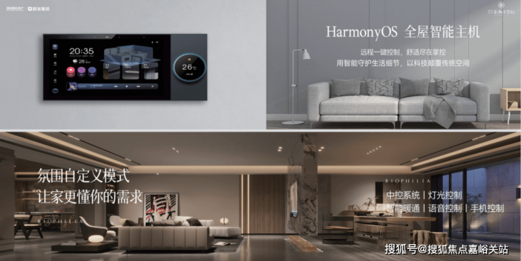 搭载华为鸿蒙生态的全屋智能系统,领创万物互联的智慧生活新趋势,全屋智能中控一键即可控制,纵然在外,也可照料家中的细枝末节;照明系统令随心情调节氛围灯光,家也拥有不同情绪……(仅为展示,实际落地以销售合同约定为准)。