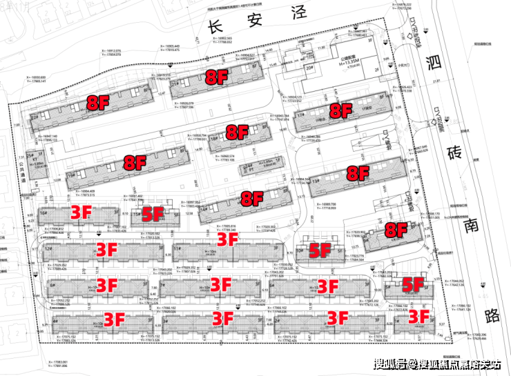 项目规划设计图已经公示,拟建10栋3F别墅,3栋5F叠加别墅以及7栋8F洋房。