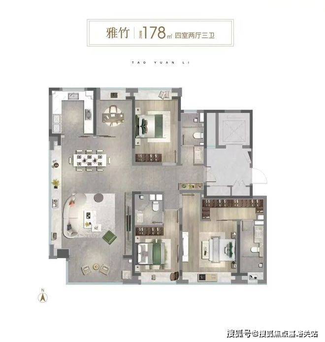 还有建面约175-178㎡4房3卫终改户型,总价1600万上下。内环一套130㎡4房紧凑户型的价格,在中环桃源里可彻底一步到位,不仅每个功能间从紧凑→舒适,还多一个卫生间,二胎家庭/多代同堂家庭生活更从容。