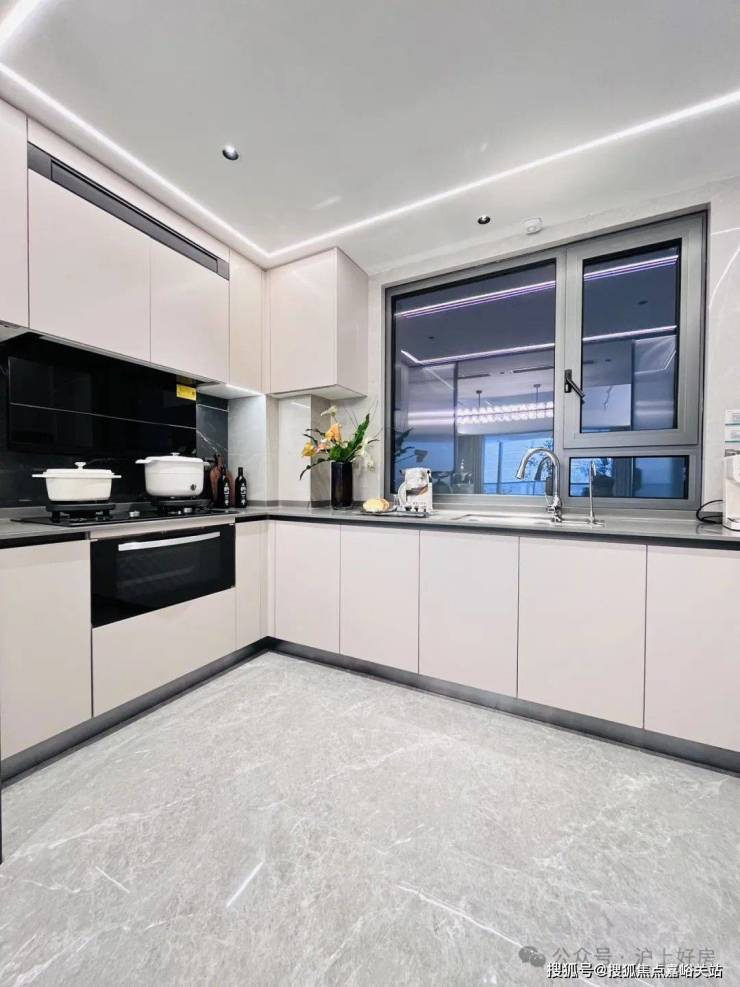 像空调新风地暖“豪宅三大件”齐备,比如中央空调甄选东芝品牌;厨具方面,采用方太的蒸烤一体机、空调油烟机,内嵌冰箱甄选卡萨帝品牌;客厅岩板背景墙也是交付标准;