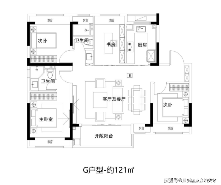 建面约121㎡ 4房2厅2卫,宽境4房,拓宽空间尺度;大开间、进深短,通透采光;主卧独立卫浴,优雅随心的寝居感受。