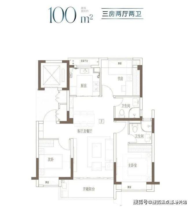 建面约100㎡ 3房2厅2卫▼