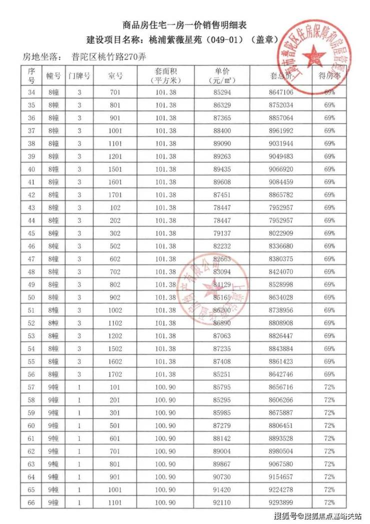 项目一房一价表