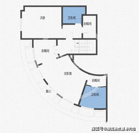 主卧空间宽敞,主卫五件套配置,西侧带露台;