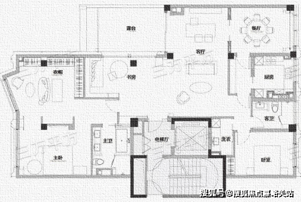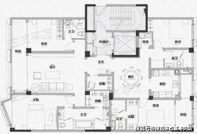 五室三厅,南北通透,整体布局讲究中轴对称,显得大气比较符合中国人的传统住宅审美。