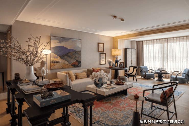 客厅,也是一处流动的空间,通过“自由灵活的组合”营造不拘束的社交空间,家具摆放,连而不挡,分而不隔。满目吸睛的艺术品,错落布置的家具,丰富着空间的视觉层次。 天潼里VIP Hotline:400-8894-986 VIP Hotline