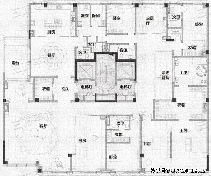 五室三厅,三套房配置,南向三开间,南北通透,双电梯入户;
