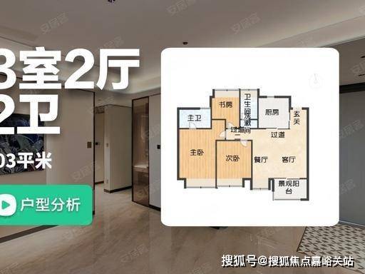 103㎡三房:约 5.1 米横厅 + 全景落地窗,采光视野极佳;主卧套房带独立卫浴与衣帽间;北向书房可拓展为儿童房 / 茶室;总价 781 万起,首付约 234 万起。