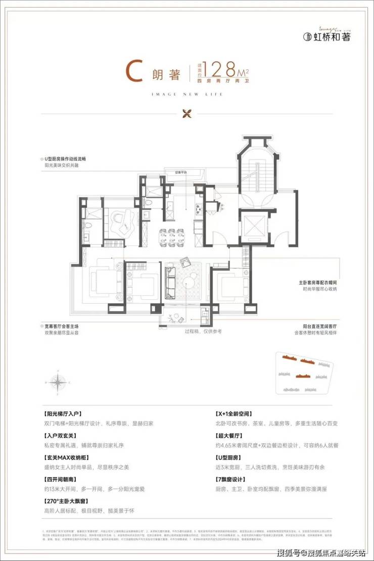过去很长一段时间,由于土地端7090政策限制,新房产品绝大部分以百平米左右刚需产品为主, 而保利虹桥和著此次将推出建面约128㎡稀缺舒适四房,本身就是一次难得的改善机遇,更何况该户型设计非常亮眼, 四开间朝南设计,尽可能将更多阳光引入室内, 主卧270度飘窗+南北通透大套房设计,同级别户型中十分罕见,充分满足舒适度和身份感。