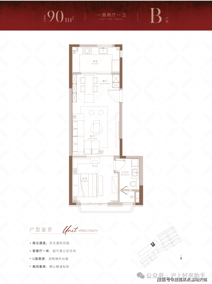 建面约90m²尊享1房户型,在100m²的基础上,进一步降低总价门槛的同时,也带来了设计上针对实用性的小巧思。