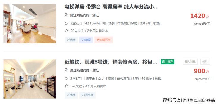 特别是浦江华侨城、浦江颐城晶寓、浦江颐城尚院这一批房龄较新的,挂牌价格大多稳定在8万/㎡左右。