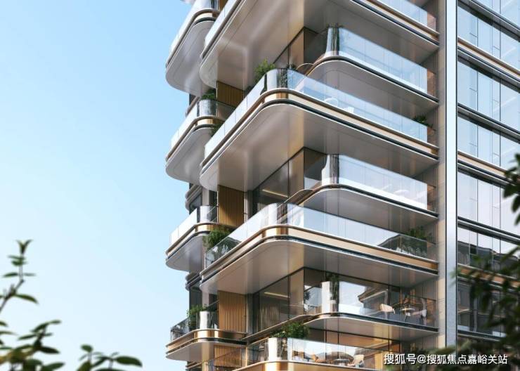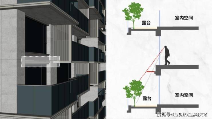 首先,在外部构造上,金茂通过金属格栅以及外挑屋檐的设计,很好地规避了四代宅错层露台所带来的隐私性问题,在这样的设计之下,上层的视线将得到有效地“被动管理”,避免下层住户的“露台生活”曝露于人前。