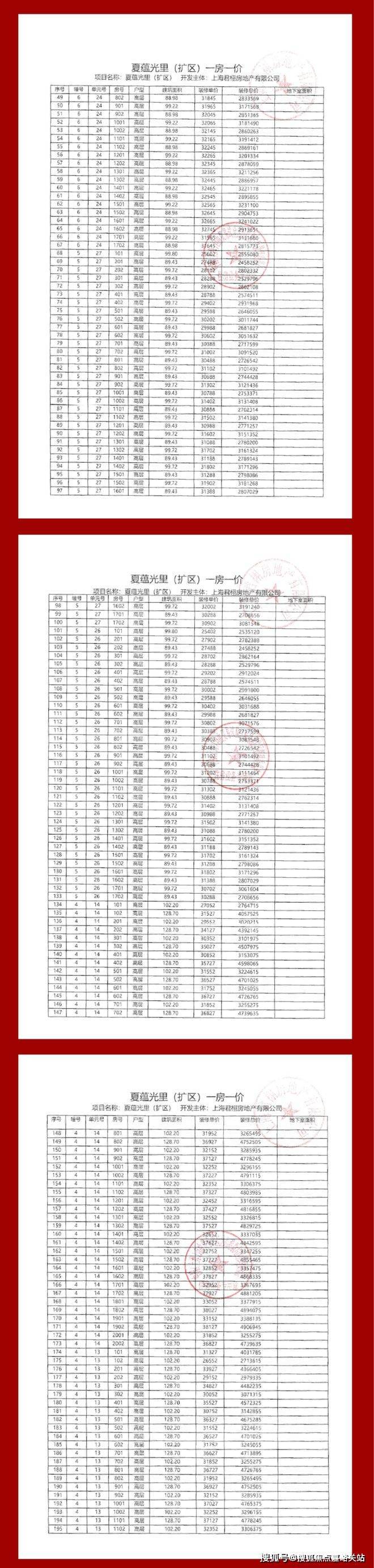 项目一房一价表