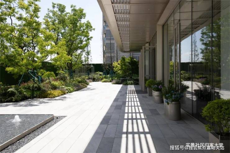首先映入眼帘的是 社区归家入口,自然都市风尚花园,精致且素雅的入口广场空间,将都市的喧嚣隔绝在外。
