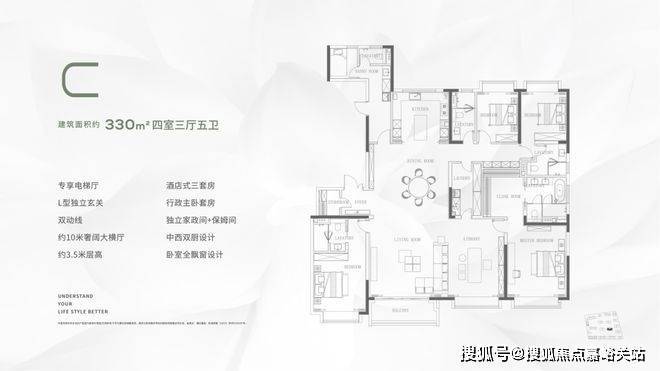 层高对于缦云上海的纯大宅社区定位,能买这样产品的购房者会非常在意空间感。缦云上海全部户型层高约3.3米,室内所有空间的门都做了通顶设计,更阔绰的居室空间,将生活格局有效放大,通风、采光和观景体验的全方位提升!