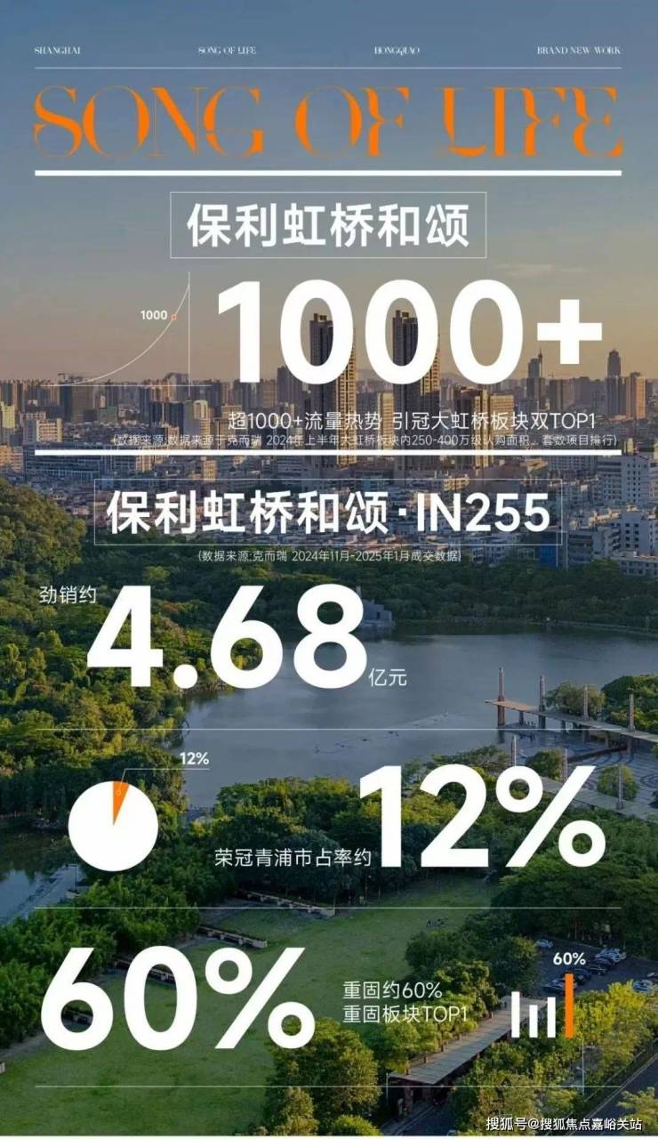 【保利虹桥和颂】以开篇者之姿,一举打破板块沉寂,凭借10000+人次现象级到访流量实力出位。继首作破局,战略纵深再落关键一子,【保利虹桥和颂.IN255】首开即强势斩获4.68亿元业绩,更以单盘青浦约12%、重固板块约60%市占率,给出了城市立新的标准答案。(数据来源:克而瑞2024年11月﹣2025年1月成交数据)