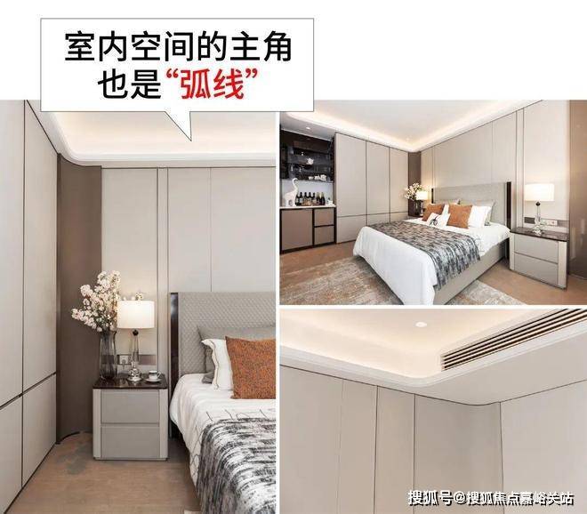 室内更夸张,无论墙面转角还是吊顶四周几乎都做了弧形处理,视觉更柔和的同时为空间注入更多优雅气息。☑️☑️紫薇之星售楼处电话:400 - 8377 - 020☑️☑️