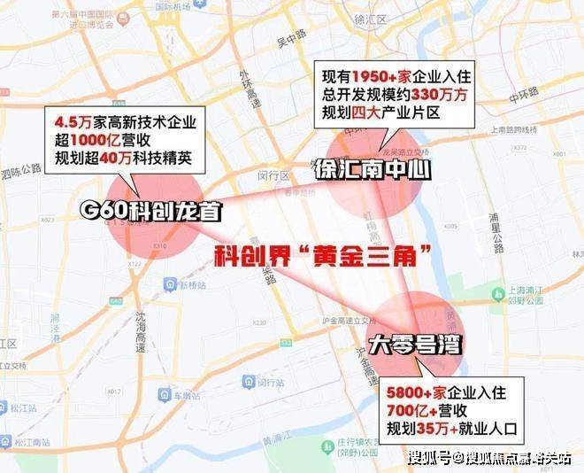 G60科创龙首与徐汇南中心、大零号湾,被业界喻为科创界的”黄金三角“天花板!