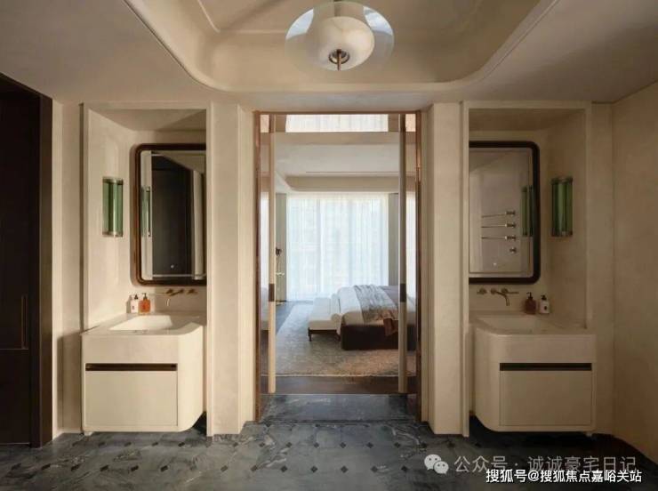 从选材来看,各种奢侈品级石材随处可见,比如与北京钓鱼台国宾馆同款的意大利进口鱼肚白石材,造价高达约2万/㎡,被誉为“世界上最贵的石材之一”!