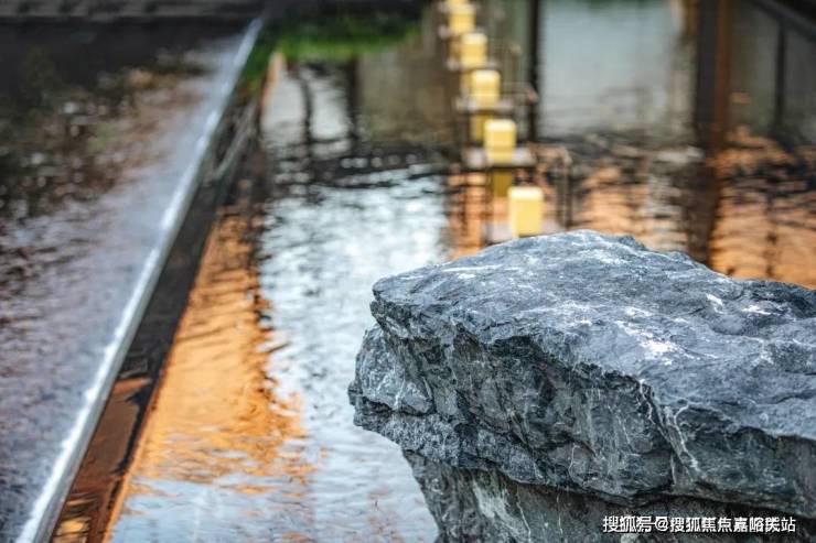在石景上:运用圆明园同款的黑山石,全小区约160吨,选自历经亿万年沉淀的九岭山脉;