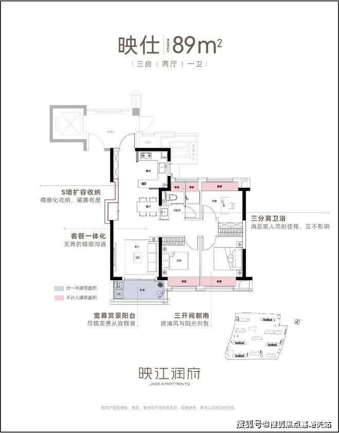 华润映江润府售楼处电话:400-8824-198作为华润置地海派3.0作品,映江润府的卷,更在于其硬核的产品力,尤其在户型的设计上,堪称卷到极致。映江润府全盘仅规划89和103两种户型,每个都堪称王炸。