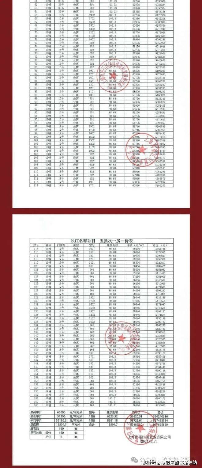 华润·映江润府五期最新一房一价表: